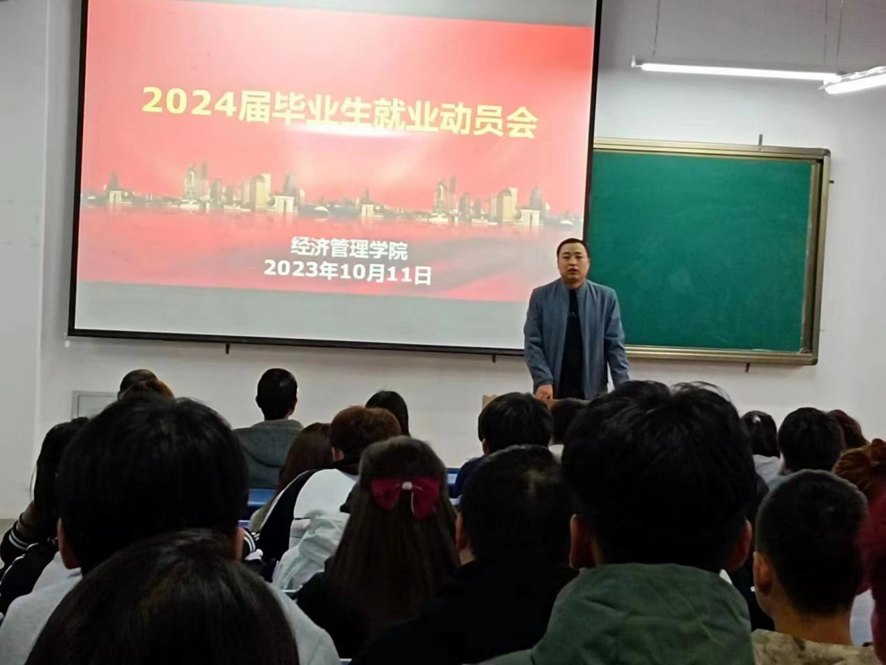 为了进一步增强毕业生的就业意识,引导毕业生了解就业形势,树立正确的就业观念,实现高质量就业。10月11日下午16:30,太阳成集团官方网站在5-301合班教室,召开了2024届毕业生就业动员会。太阳成集团官方网站党总支书记、院长赵典凯,太阳成集团官方网站党总支副书记王玥,太阳成集团官方网站院长助理李金龙,学生管理专干李午寅,太阳成集团官方网站2024届毕业班班主任及全体毕业生参加了会议。