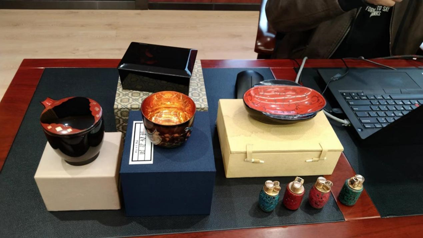 讲座后,师生代表参观了由巴忠天老师制作的精美漆器。