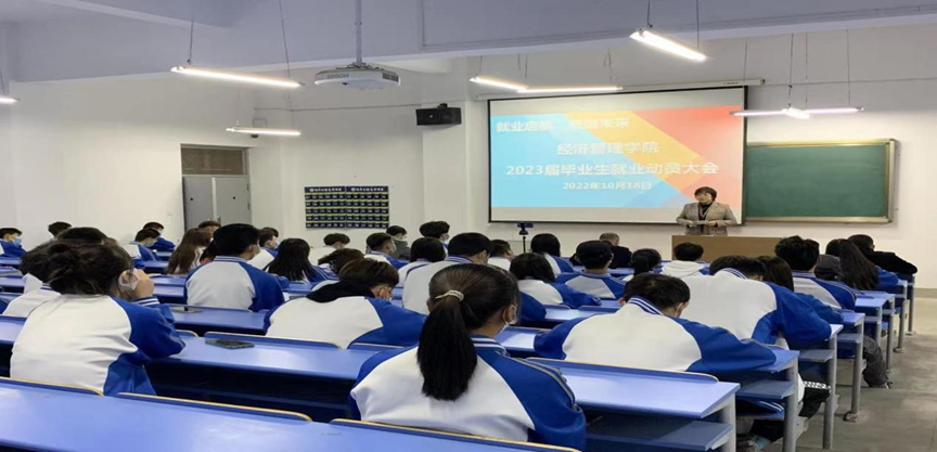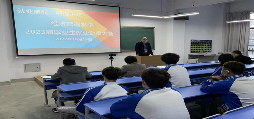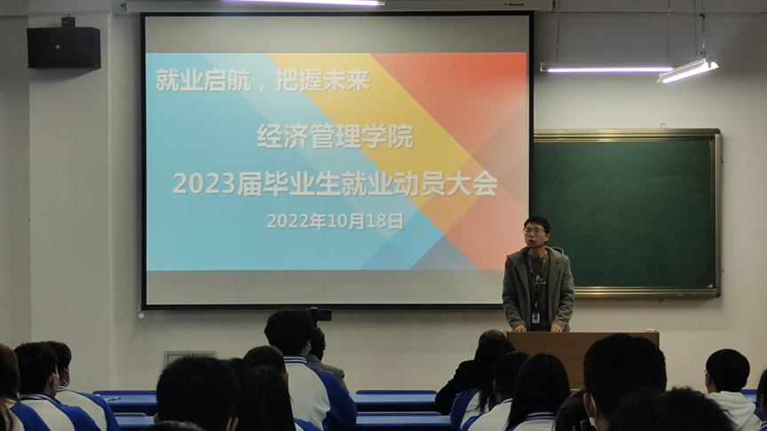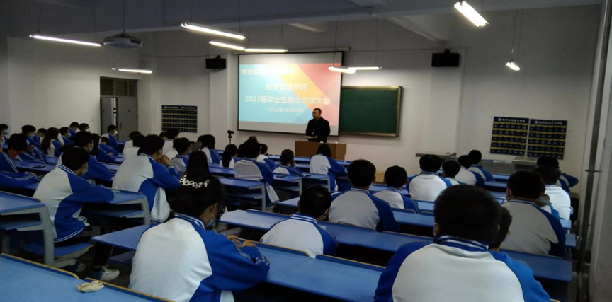 为了进一步增强毕业生的就业意识,引导毕业生了解就业形势,树立正确的就业观念,实现高质量就业。10月18日下午,太阳成集团官方网站通过线上线下结合的方式召开了以“就业启航、把握未来”为主题的2023届毕业生就业动员大会,主会场设在5-208阶梯教室,各毕业班设置分会场。太阳成集团官方网站党总支书记、院长赵典凯,副书记王玥,学生管理专干李午寅,经管学院2023届毕业班班主任及全体毕业生参加了会议,院长助理张正旭主持会议。