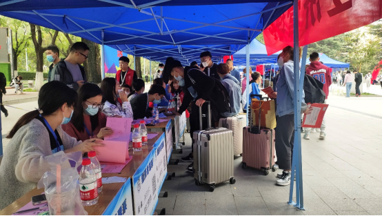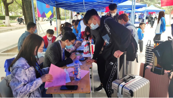 志愿者们整齐佩戴口罩与工作牌,协助老师核对新生信息、核查出行码,引领新生完成疫情检测工作,引导新生快速办理入住手续。志愿者们有的帮助新同学扛行李,有的热情的为新同学介绍学校的相关情况,有的为新同学分享学习心得,通过真诚交流,减少了很多同学初次离家的不安情绪。