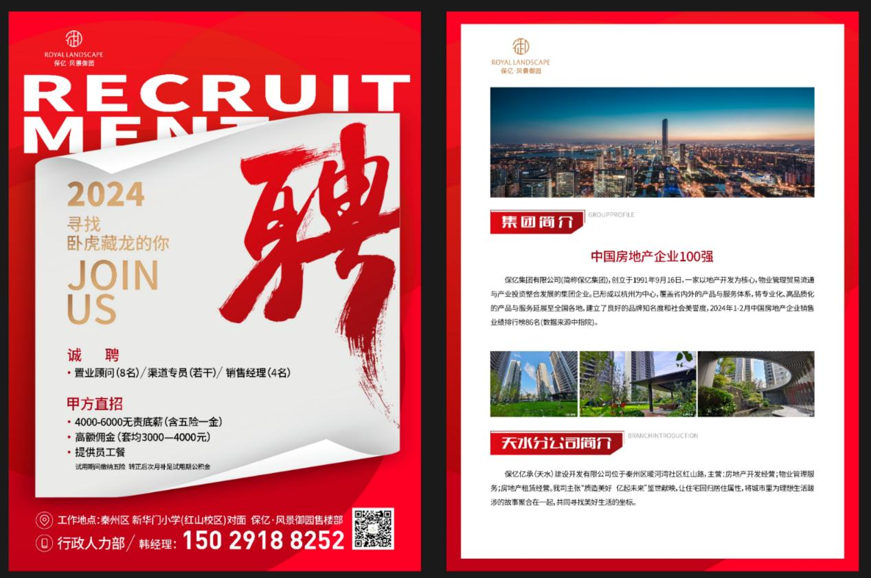 工作地点:秦州区 新华门小学(红山校区)对面 保亿·风景御园售楼部