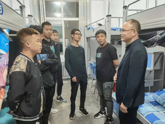 每到一个宿舍,老师们叮嘱新生要及时添衣保暖、注意身体健康,遇到困难及时和老师反映,并提醒同学们要整理好宿舍物品,团结友爱,共同营造良好的宿舍氛围。同学们情绪高涨,充满朝气与活力,热烈欢迎老师们的到来,还热心地拿出水果与老师分享。走访在欢声笑语中进行,师生相处十分融洽。