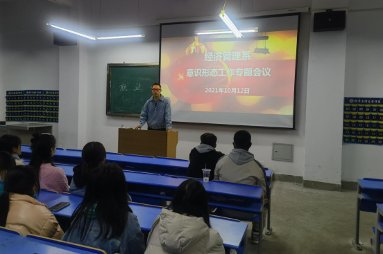 为进一步贯彻学院党委对意识形态工作的总体部署和要求,落实落细系部意识形态各项工作,经济管理系于10月12日下午召开意识形态工作专题会议。会议由系党总支书记、主任赵典凯同志主持。