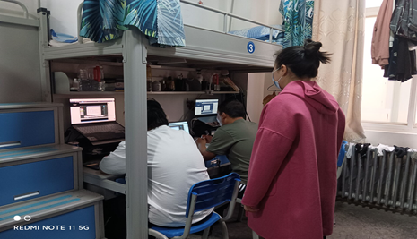 课余时间,他还到实训室指导技能大赛的参赛学生,他每次到实训室都会提醒学生做好体温检测与记录,并且做好实训室的消毒工作,保证参赛学生有一个良好的备赛环境。面对备赛同学提出的困惑,他也尽力帮助解决,使学生能够全力备战比赛。