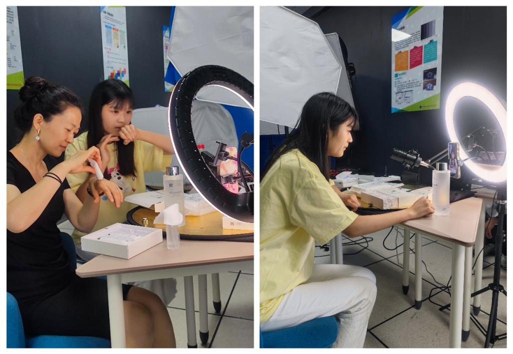 本次直播带货职业体验活动与甘肃本土护肤品牌朵泊颜进行合作,将朵泊颜产品作为直播间主推产品。主播同学从品牌历史、产品特点、产地、产品使用方法等多角度为直播间粉丝进行详细讲解;负责场控的同学调节直播间的氛围,及时上下架商品,提醒主播回复粉丝问题;现场观看的同学们也纷纷进行才艺展示,为直播间吸引人气。直播活动选品可靠,组织有序,为电子商务专业的学生提供了一次难能可贵的实践机会。