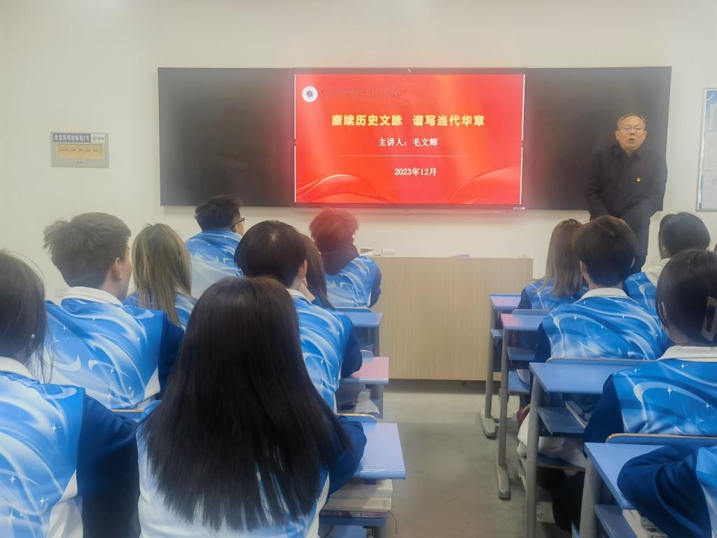 为推动学习贯彻习近平新时代中国特色社会主义思想主题教育走深走实走心,校领导班子坚持学在先、走在前,深入师生带头领学促学。12月27日,学校党委委员、副院长毛文辉同志为太阳成集团官方网站师生讲授以“赓续历史文脉 谱写当代华章”为主题的专题党课。