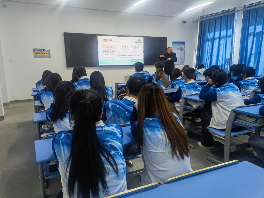 课程伊始,毛文辉同志以甘肃的悠久历史为主题与同学们展开互动,从微观到宏观,以班级文化、地方文化延申至中华文化。他从三个方面展开讲述,一是历史悠久缔造中华文化。中华文明具有连续性、创新性、统一性、包容性、和平性突出特性。文化是时代变迁、社会变革的先导,是民族的精神命脉,文化繁荣发展是社会主义现代化的应有之义。二是培根铸魂推动文化繁荣。中华优秀传统文化焕发活力,文化产业蓬勃发展,现代公共文化服务日趋完善。三是笃定前行建设现代文明。坚定文化自信,秉持开放包容,坚持守正创新。