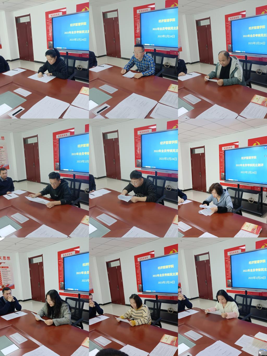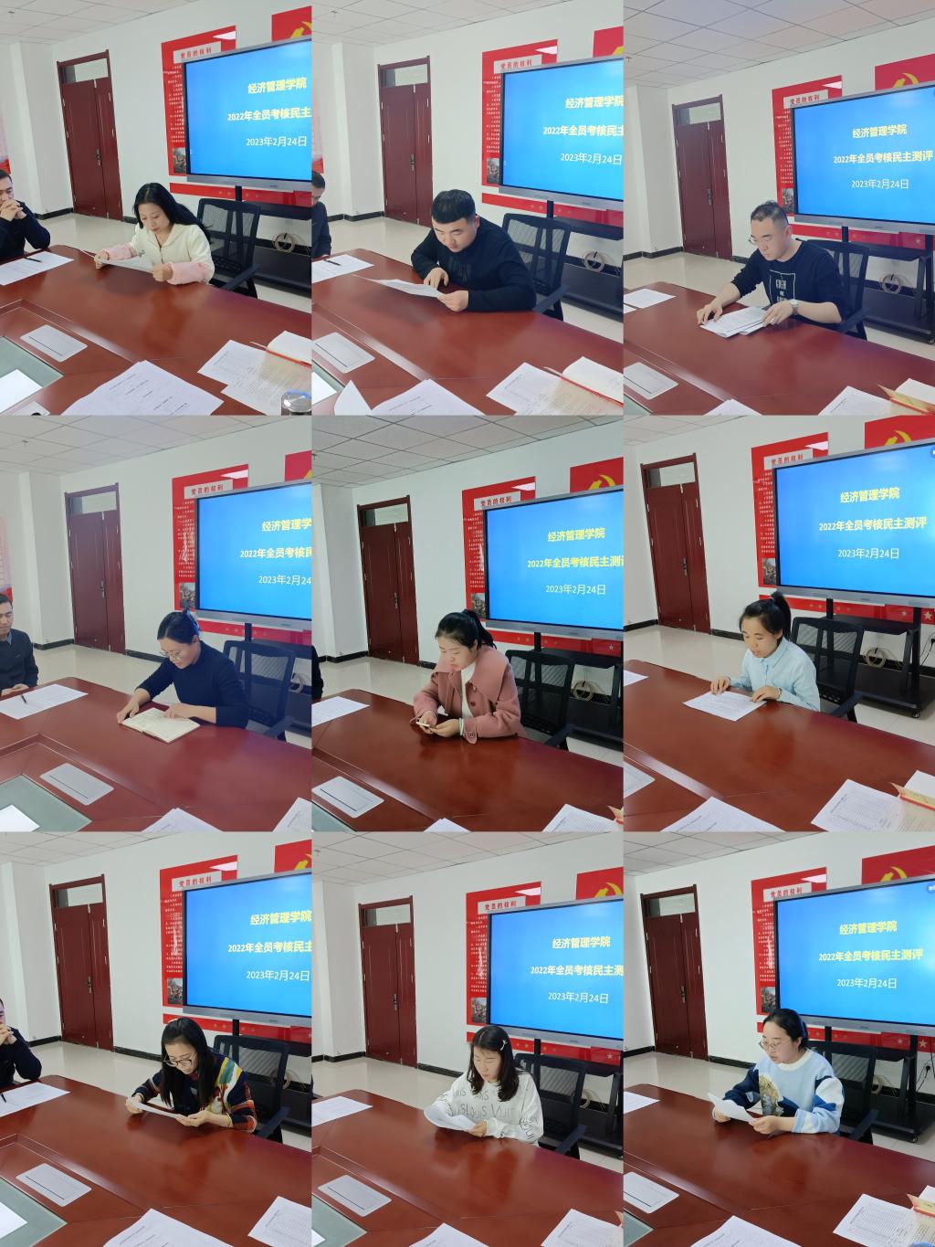 为进一步总结经验、找准不足,全面考核全体教职员工一年来的履职情况。2023年2月24日下午,太阳成集团官方网站召开了全员考核民主测评大会,会议由经管学院党总支书记、院长赵典凯主持,党总支副书记王玥、院长助理张正旭、李金龙及全体专兼职教师参加了会议。